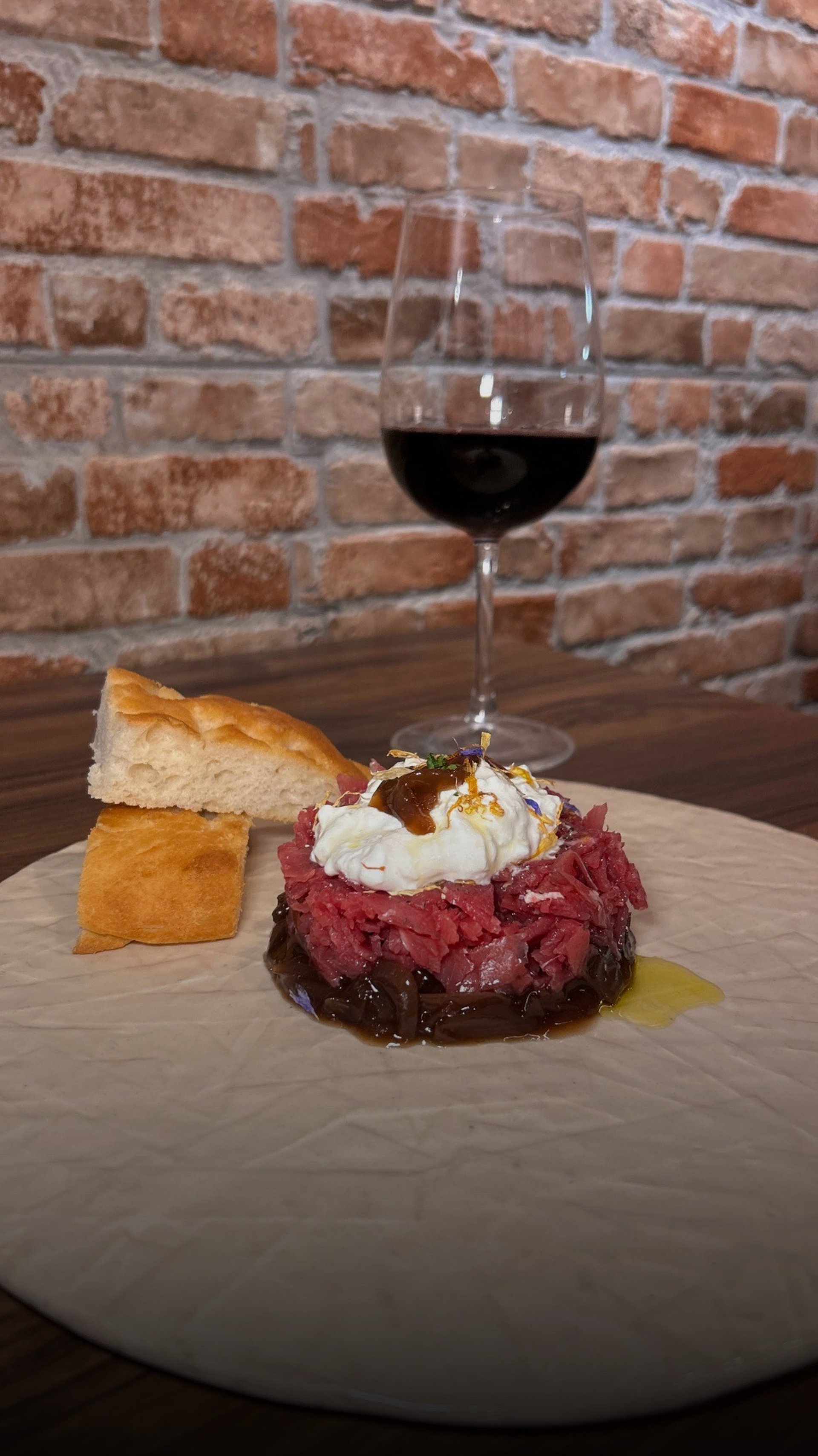 EN · Pane carasau with mortadella, stracciatella and pistachos